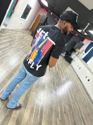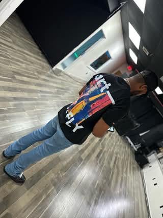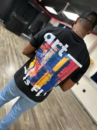 Heavyweight 100% cotton T-shirt with custom large logo on front and back. Luxury quality and fit