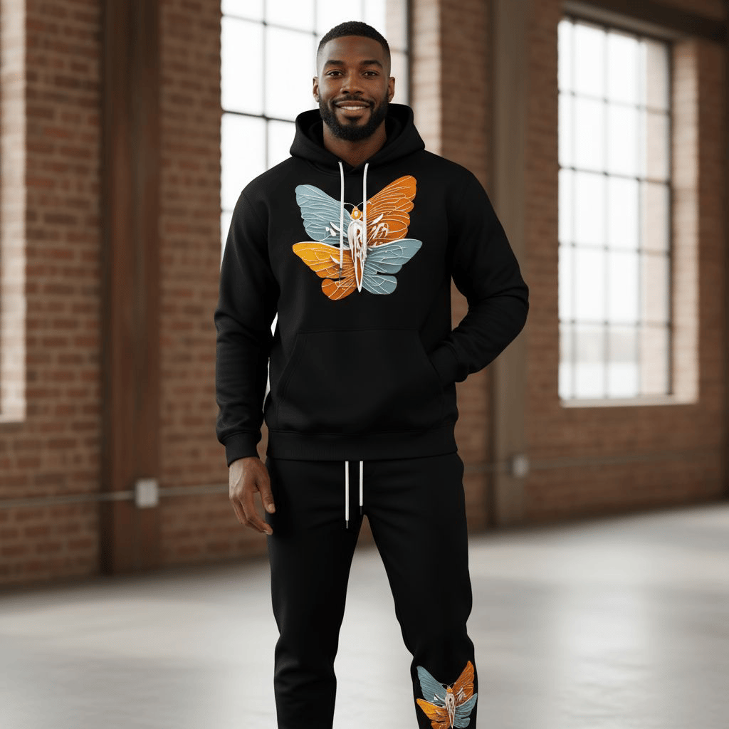Black SWEATSuits with custom logo on front and leg great quality and fit
